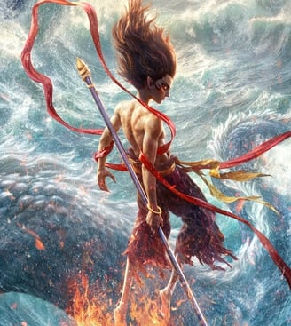 哪吒,一个矛盾的综合体,魔性与神性在他体内交织,造就了他复杂而迷人的性格。