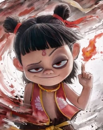 Ne Zha, a complex being, embodies both demonic and divine traits, creating a captivating personality.
